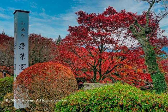 箱根小涌園が所有する、6万6000平方メ-トルの 庭園。初夏のツツジ40種30000株、秋の紅葉の 名所として知られる。初代当主・榎本恭三が、 大正初期に東京大久保からツツジを移植したこ とが蓬莱園のはじまり。